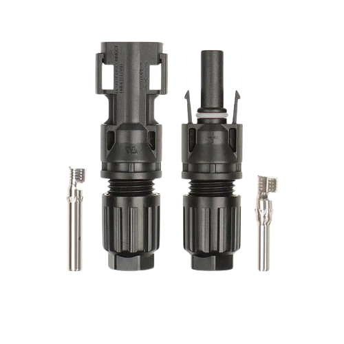 An MC4 (Multi-Contact 4mm) connector is the industry-standard plug used to connect solar PV panels together. It is a single-contact electrical connector, specifically designed for outdoor solar applications. These connectors are easy to use, lock securely, and are resistant to dust, moisture, and UV radiation.